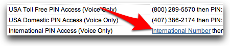 A: You can provide them with a phone number in a local country and then have them enter in a "PIN" that routes them to your application. To see the list of currently available international dial-in numbers, go into the Contact Methods tab for your application in the Application Manager and click on the "International Numbers" link: